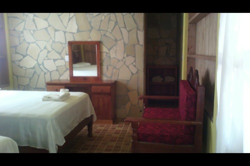 Esta habitación cuenta con un sillón, repisa, tocador, un baño privado con agua caliente y una terraza amueblada.